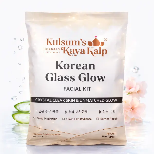 Kulsum's Kaya Kalp Korean Glass Glow Facial Kit is a premium 9 step professional facial kit specially designed to deliver crystal clear, smooth and radiant glass-like skin. Inspired by Korean skincare rituals, this advanced facial treatment deeply cleanses, exfoliates, nourishes and brightens the skin to give you an unmatched glow in just one session.